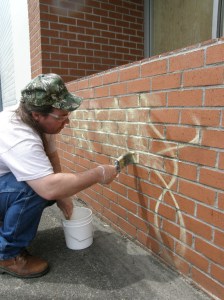 The Port City Graffiti Abatement Program provides affordable graffiti abatement services to businesses in the Eliot neighborhood as well as living wage employment for community members with DD. Professional graffiti removal crews offer power washing, painting, graffiti removal on brick, brick sealing, and other abatement services. Businesses partnering with Port City for graffiti removal either pay an hourly rate for graffiti removal services or a monthly flat fee. Port City direct care professionals work one-on-one or in small groups with graffiti abatement crew members to paint over or clean off graffiti affecting partner business within 48 hours of identification.