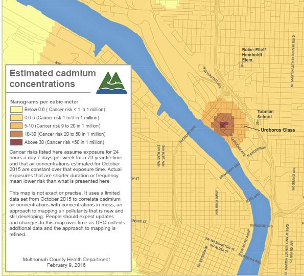 Portland’s air pollution problem was brought to our attention in January 2016, when the Portland Mercury broke a story, exposing elevated cadmium and arsenic in several areas of our city. Days later, Oregon’s Department of Environmental Quality (DEQ), the regulatory body responsible for air safety, announced their data indicated a monthly average of 49 times the state’s established air-safety benchmark level for cadmium and 159 times the benchmark for the arsenic. Cadmium and arsenic are both known carcinogens, connected with serious health effects, like cancer, respiratory problems, and organ damage.
