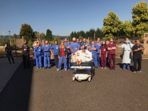 Unfortunately, Tom was struck by a vehicle while cycling. Taken by ambulance to Legacy Emanuel — arriving about 9:30 a.m., some 30 minutes before prime viewing — Tom told the medical team he still wanted to see the eclipse. Staff in the emergency room evaluated him, stabilized him, gave him eclipse glasses and wheeled him in his hospital bed outside in time to see the moon pass over the sun.
