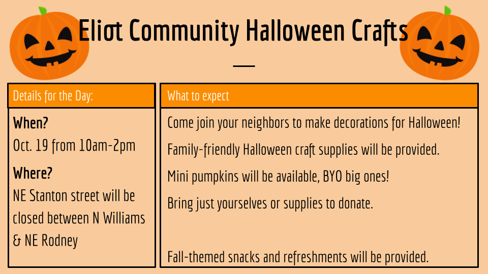 Meet your neighbors and make spooky or cute things to take home. We’ll have mini pumpkins available, and if you’d like to decorate a big one please bring one with you! We plan to keep it simple with a focus on surface decorations rather than cutting through the pumpkins. Hope to see you there!