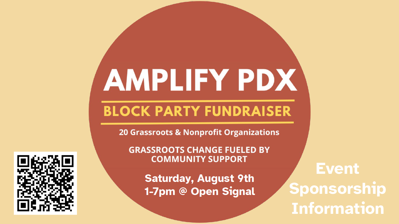 AMPLIFY PDX is a community resource block party and fundraiser featuring more than 20 of Portland’s most visionary community groups and nonprofit organizations! A celebration of collective resilience and a call to action in support of Portland’s cultural workers, justice organizers, and community-builders. Connect with organizations working across a wide range of issues including racial justice, immigrant rights, youth empowerment, creative economy, cultural sovereignty, and gender liberation.