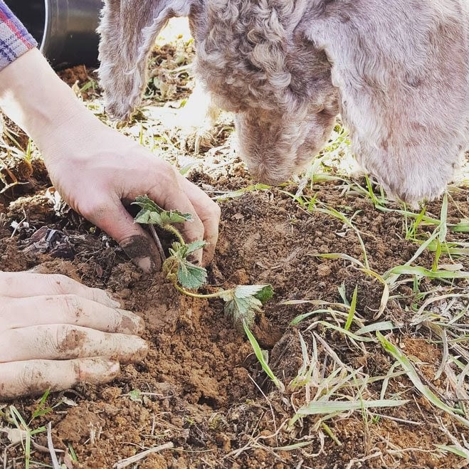 Some welcome relief from staying at home – planting starwberries at Oasis of Change. Photo credit Dov Judd