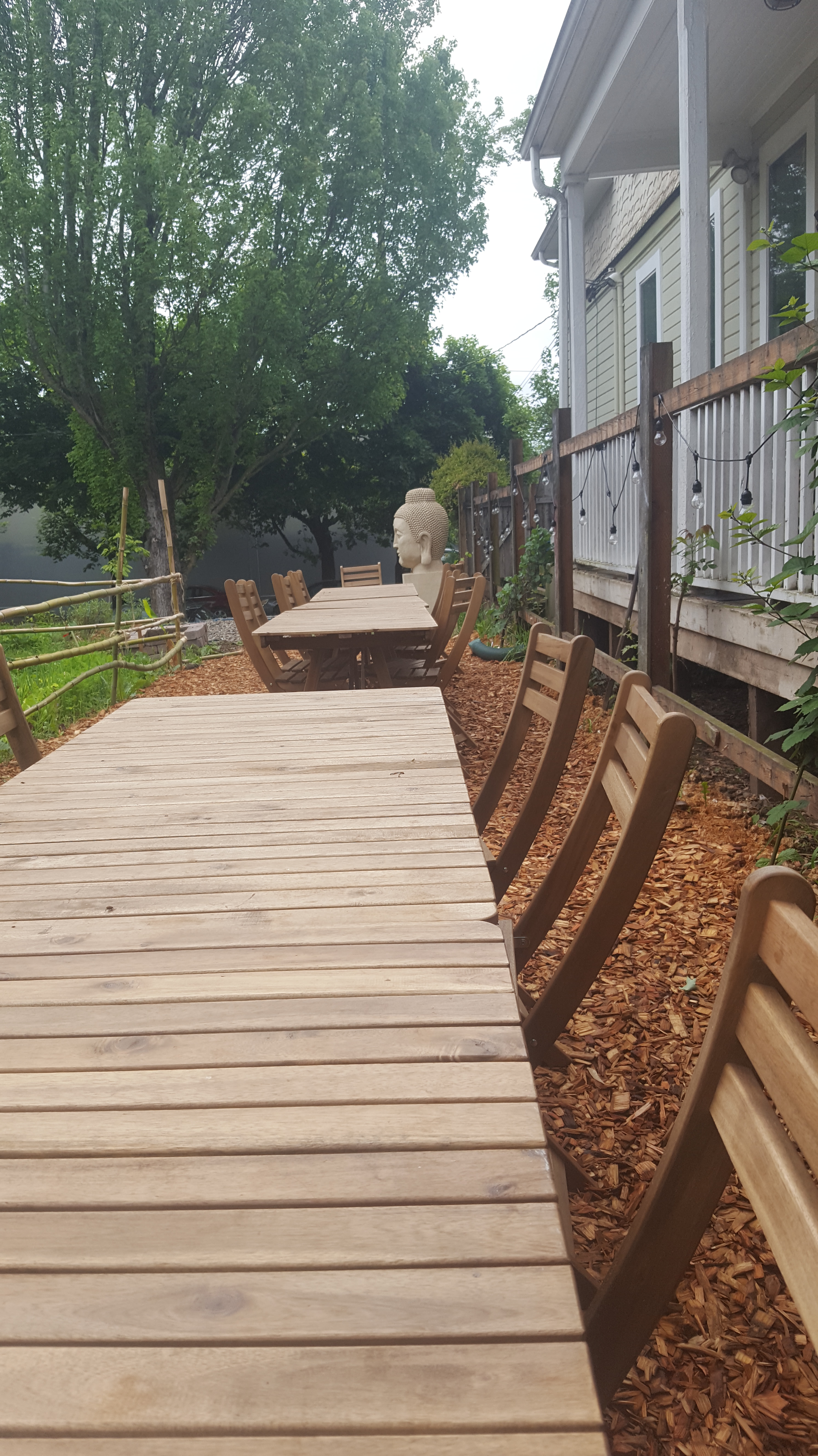 The sun is shining and I hear the cheerful sound of voices and the percussive chime of tools being used in the garden as I walk up to the 126-year-old Victorian home behind the Billy Webb Elks Lodge just south of Tillamook on Williams. I realize that today is going to be a good day of community building. The peaceful feeling I experience is overwhelming as I enter the house looking for the owners of the new business in our Eliot neighborhood. This space is definitely an oasis in the center of the city and in the middle of our neighborhood. Though it sits on busy North Williams Ave, once inside the house and even on the surrounding lot, you forget that there is a bustling world beyond its borders. As I introduce myself to the business owners, a group of women and children arrive happily chatting amongst themselves. We all exchange introductions and then my tour of the property begins.