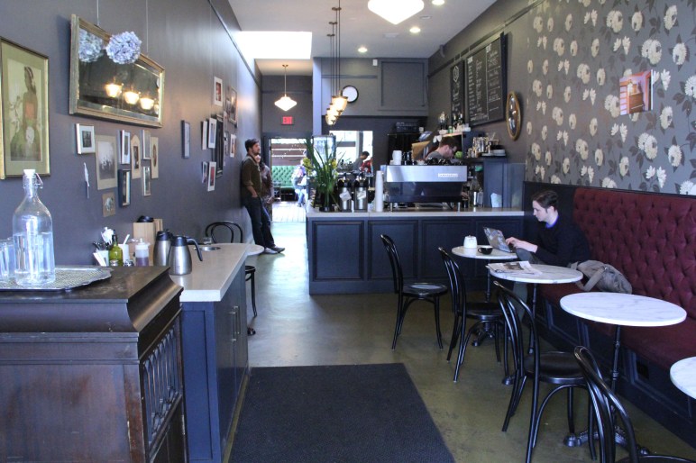 A childhood portrait of Ed Wampler, who once owned a restaurant supply company in NW Portland, overlooks the counter of his granddaughter’s elegant neighborhood cafe. Naomi Diallo learned the restaurant business from him and from her father, Roger Wampler, who owns Ron’s Restaurant on SE 82nd Ave, but it was three months spent in Italy that inspired her to open a European-style cafe, serving coffee, beer, wine, and pastries.