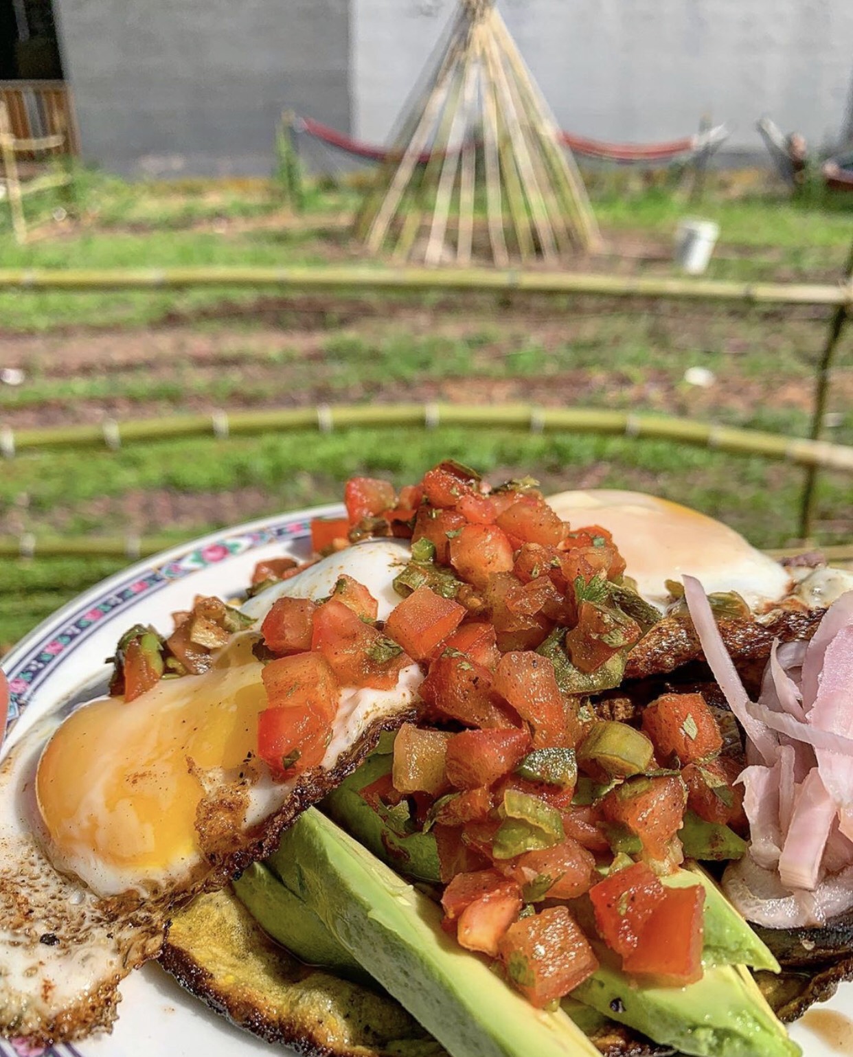 In the middle of the amazing garden tour, a couple arrives bearing tempeh for Dov and Kathryn to try. I was fortunate enough to be invited to stay for lunch and enjoy the sautéed tempeh which was incredibly delicious. Also in attendance is Modern Cavegirl who has a pop-up restaurant onsite occasionally for Saturday breakfast. Other chefs offer pop up dinners. (See the short article about Hearts & Bones Kitchen on page 8) The amount of networking that Dov and Kathryn have done just since April when they opened the doors to Oasis of Change is impressive!