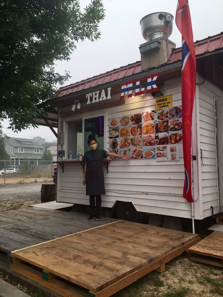 Julie Wilson moved here from Hawaii after working with her auntie who had a restaurant in Kauai, Hawaii. She learned how to make delicious Thai cuisine. Her sister owns a restaurant in Troutdale, Thai Carnation, so it’s no wonder that Julie would accept the offer to buy the food cart that used to be owned by her sister.