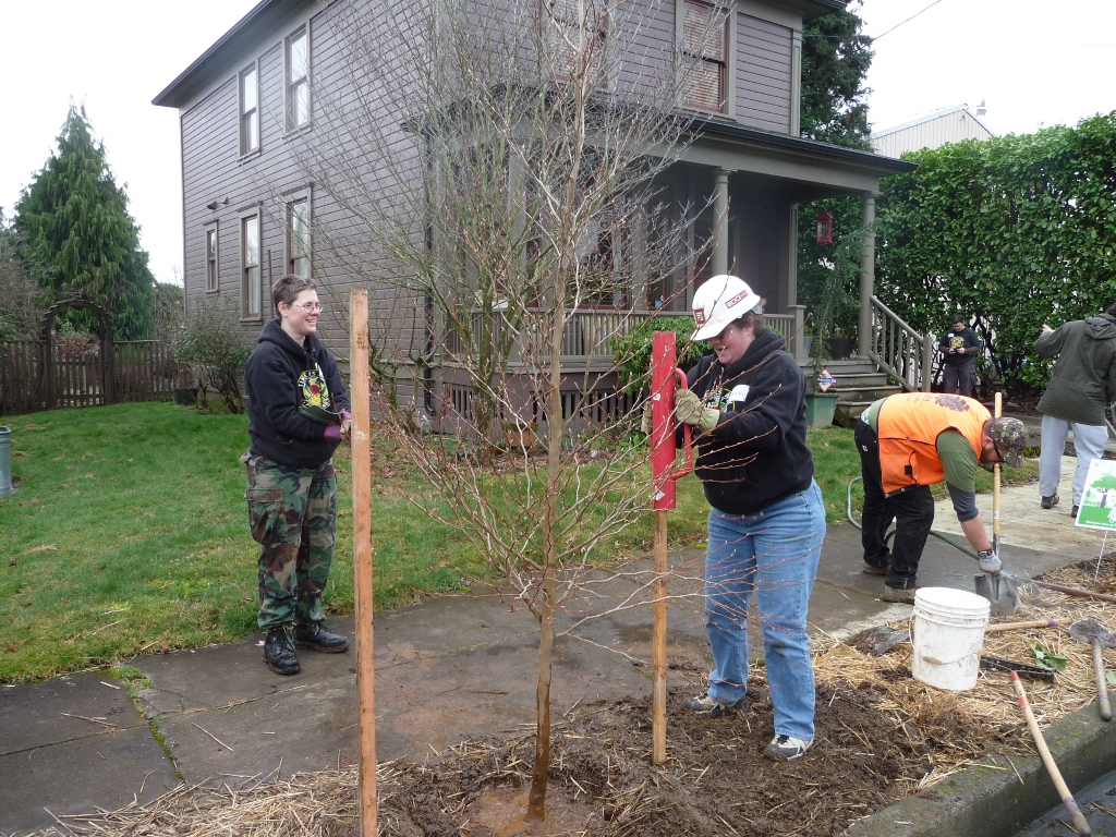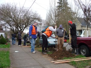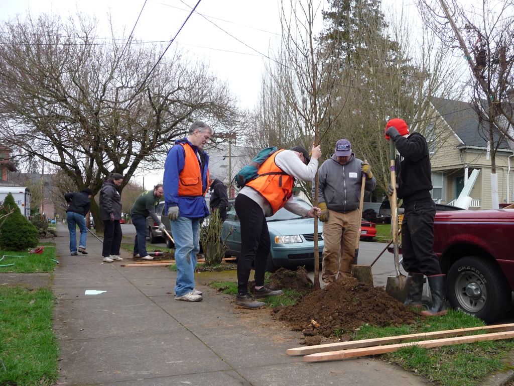Trees, trees, trees!! This spring saw over 40 new street trees planted in Eliot as part of a small business grant from the Neighborhood Association, partnering with Friends of Trees and the Eliot Livability Team, as well as support from Toyota to tree-up their own property line on N.E. San Rafael. Trees are truly an investment in the beautification and livability of our neighborhood and we are so glad for the businesses that received new trees on their properties. If you notice young trees suffering from lack of water in the summer heat, please reach out to the Livability Team by email at livability at eliotneighborhood dot org.