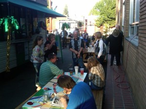 In keeping with a current Portland trend, a couple of underutilized lots have been transformed into great little food cart pods in Eliot. The first few carts to call Eliot home are located in a lot named Jimmy’s Corner at the corner of Vancouver and Fremont Street. I discovered them several months ago while out canvassing the area to notify residents about upcoming neighborhood events. The owner of Mum’s Kitchen offered samples of her African fare and I was hooked. Soon after, a Mexican cart arrived and their homemade fresh tamales made my mouth water. The pod also has a pita cart and a drive thru coffee cart.